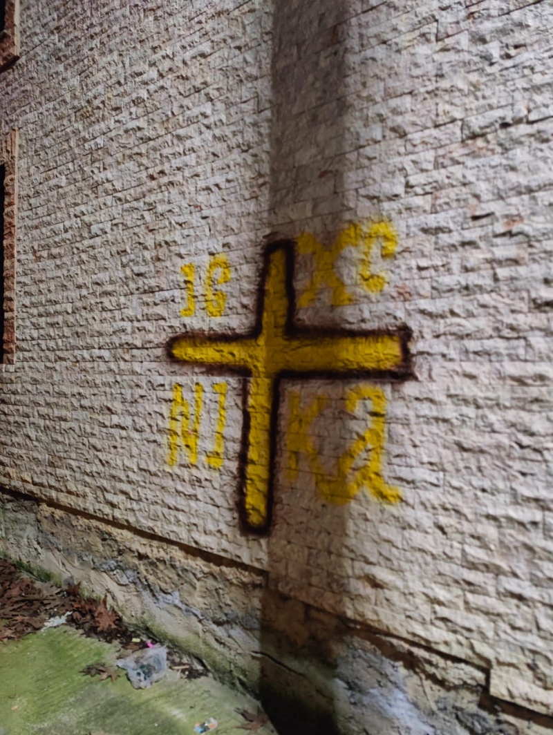 tarafından haç ve çeşitli semboller çizildi.