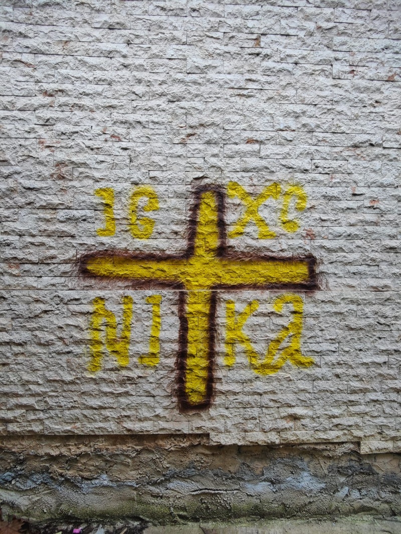 tarafından haç ve çeşitli semboller çizildi.