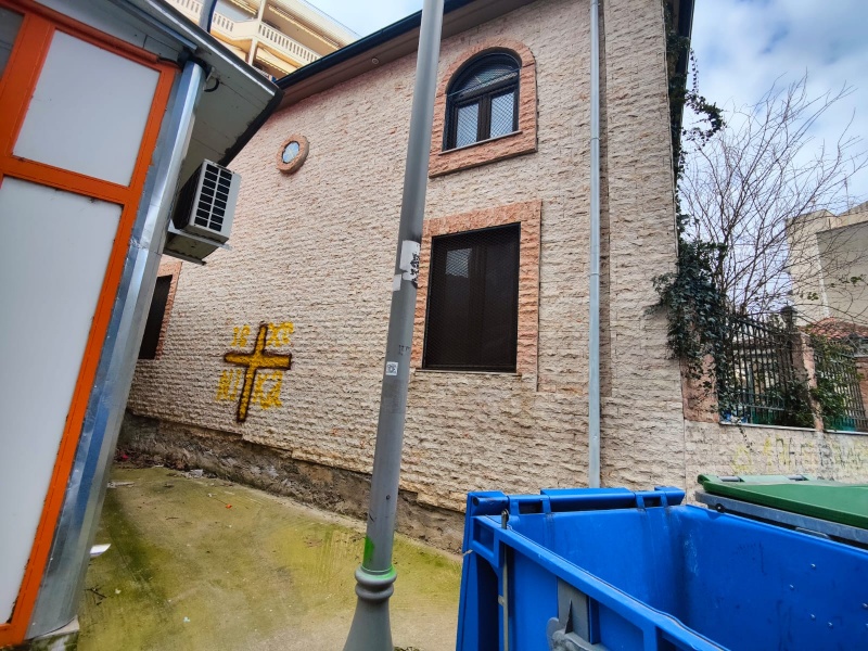 gerçekleştiği değerlendirilen olayda, caminin dış cephesine sprey boya ile haç